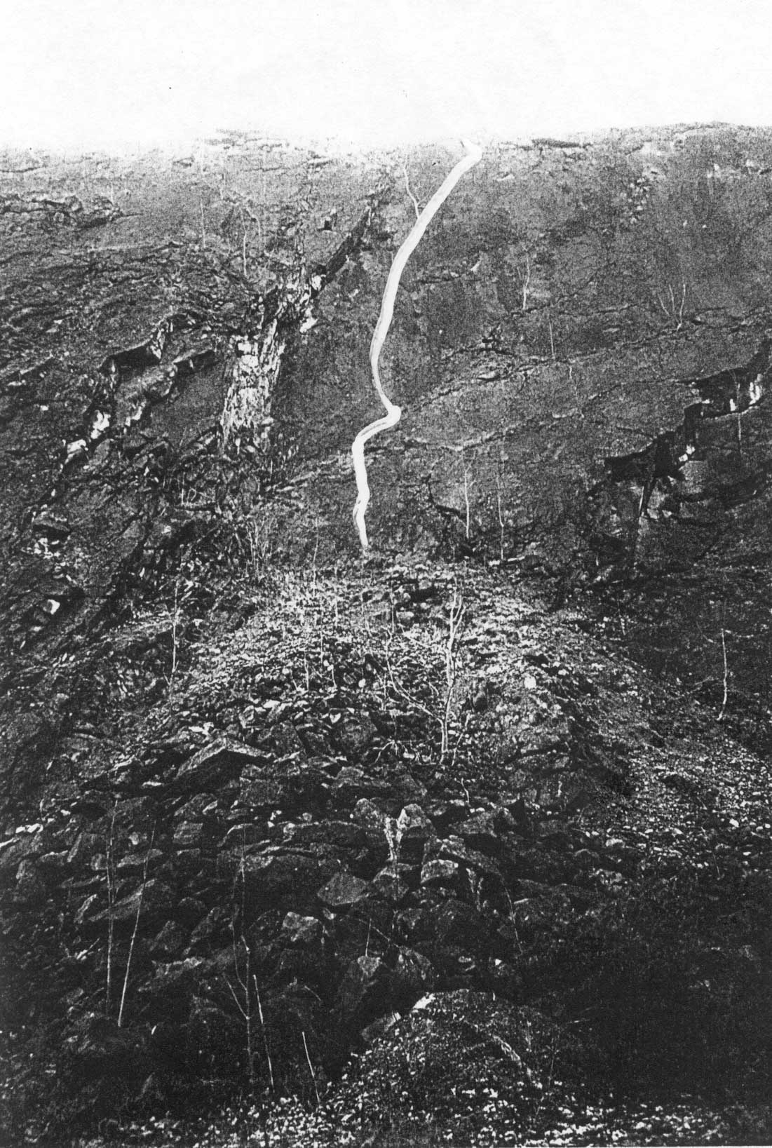 The next climbs are to the left in the far corner of the west side of the quarry. Follow the south face left to the corner until a blocked cave entrance is found in the quarry floor (Conning Tower Cave).