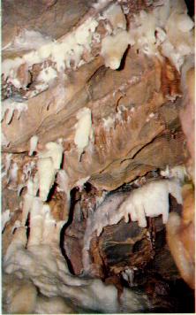 The viewing of formations is one of the most rewarding experiences in a cave. Over many thousands of years the gradual build up of calcite develops beautiful shapes that often defy description. Many of these features are of great importance to cave scientists, who are able to deduce the evolutionary history of cave systems by analysing the formations which occur within them. Damaging or removing such features is like tearing out a page from a historic document. Yet these fragile formations are very susceptible to damage, and their beauty can be permanently spoilt by the touch of a dirty hand. Unfortunately, formations are often in close proximity to passers-by and damage, both intentional and accidental, does occur. As a solution, formations are often taped off and these tapes must never be crossed. Where tapes are not in place special care is required and it should always be remembered that a moments thoughtlessness may deprive someone else of the pleasure of seeing what once was there.